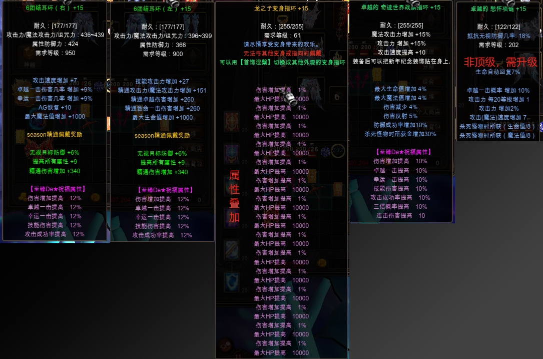 申明:顶级物品为真实顶级,无后结果进阶升级等。