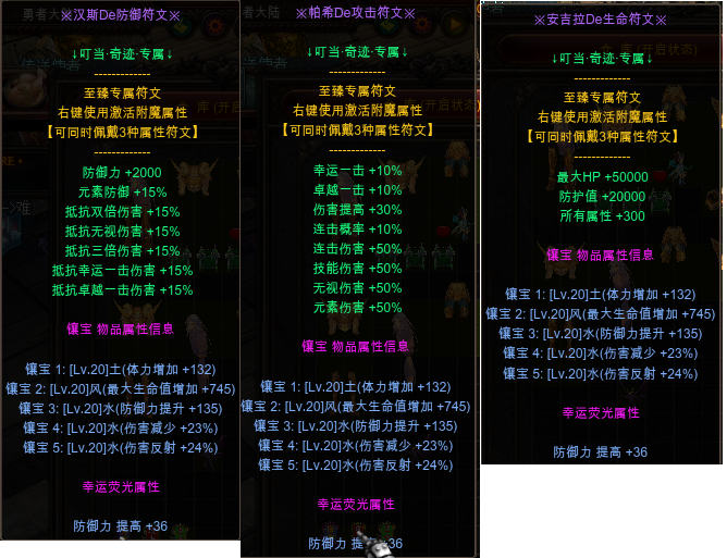 | 攻击、防御、生命符文(顶级20级满镶嵌) | 300网币 |